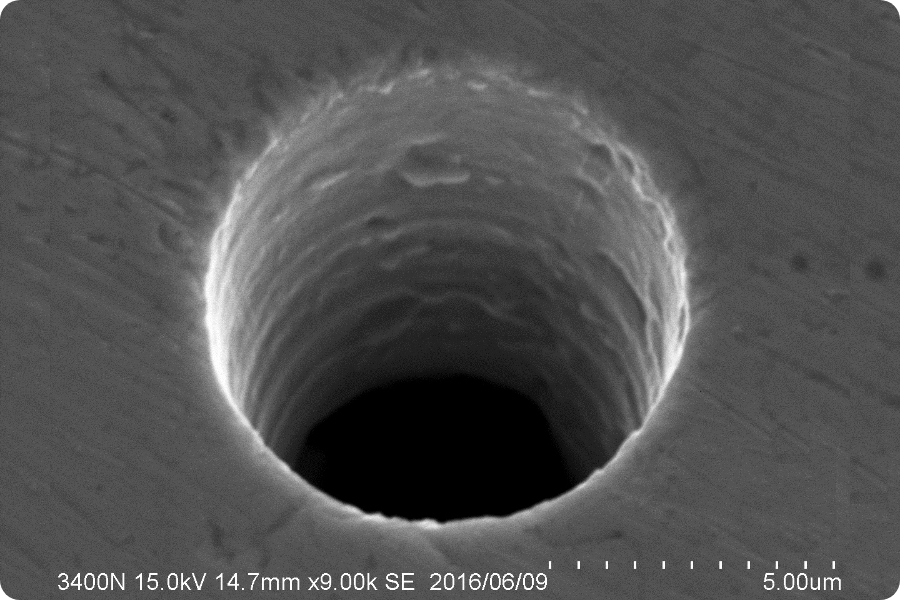具有可以開出直徑為0.01mm微孔的實力,商用能做到直徑0.03mm。 是目前半導體和生物技術(shù)行業(yè)急需的小孔徑技術(shù)。