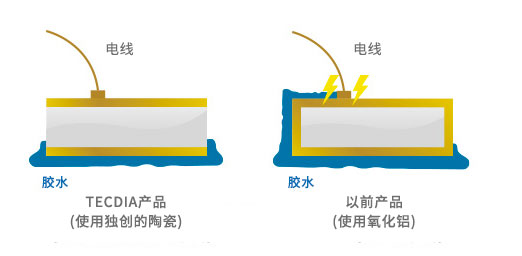 在這里TECDIA 開發(fā)出的基材采用具有導(dǎo)電性的陶瓷,上下兩面鍍層的短路塊