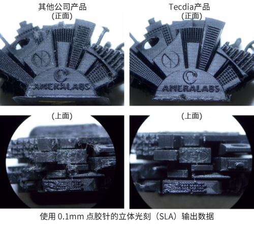 因此,Tecdia 開發(fā)了一種尖端孔徑為 0.1mm 的 3D 打印點膠針,這是 3D 打印的最佳選擇。