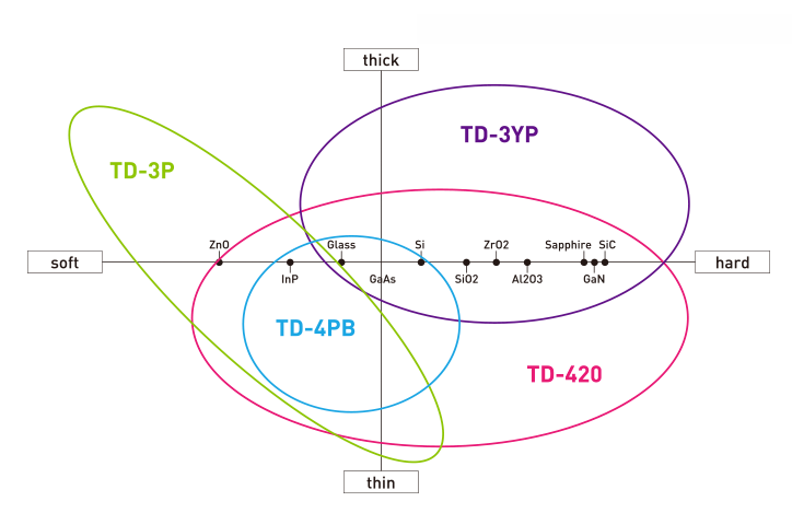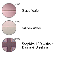 上圖說明之外,應(yīng)依照不同的晶片的表面制程(有無蝕刻、保護膜的材質(zhì)等),芯片尺 寸(比例)等各種狀況,來選擇合適的金剛石劃線工具。