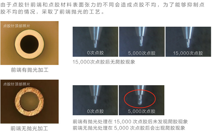 消除了針頭與針管連接處的臺(tái)階,改善來自點(diǎn)膠機(jī)的壓力反應(yīng),提高了點(diǎn)膠效率。