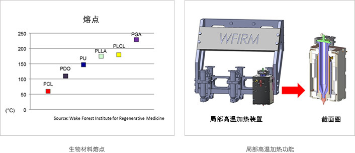 為防止打印過(guò)程中生物材料凝固,我們構(gòu)建了可加熱至300℃的加熱系統(tǒng)。與以往最高只能加熱到100℃的系統(tǒng)相比,實(shí)現(xiàn)了可適用于各種器官的材料打印。
