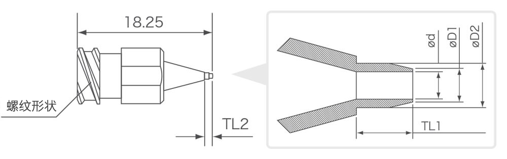 | 內(nèi)徑針管長度(TL1) | 1)詳見規(guī)格表 2)標(biāo)準(zhǔn)品TL1 和 TL2的尺寸相同。如需變更歡迎咨詢。 |