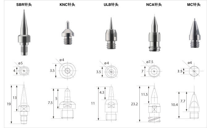 對應(yīng)狹窄空間點(diǎn)膠針頭 適用于點(diǎn)膠范圍較為狹窄的針頭。
